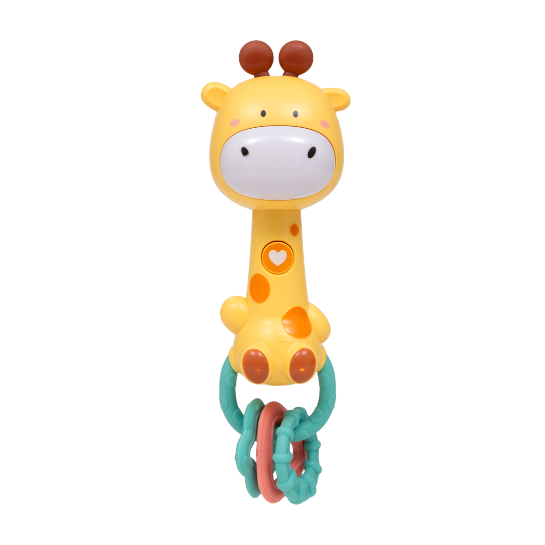 Solta o som! O pequeno vai descobrir diferentes ritmos e sons de animais com a Girafa Musical da Buba. Sensível ao movimento, é so chacoalhar para criar o próprio ritmo.