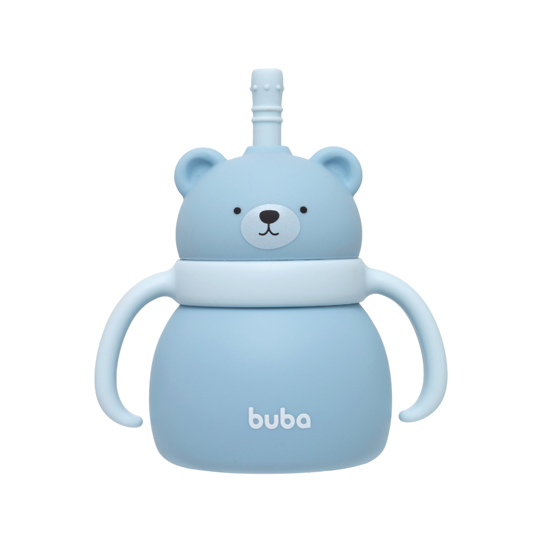 O copo de silicone com canudo da Buba é ideal para auxiliar no desenvolvimento do hábito de beber líquidos de maneira regular e independente. É seguro para as crianças em casos de queda, pois o silicone não quebra e possui toque frio, impedindo transferência da temperatura do líquido garantindo o toque suave para as mãos sensíveis da criança. Já as alças promovem maior sensação de confiança e independência para as crianças. - Tampa antivazamento e alça removível. - Feito em silicone de grau alimentício, atóxico e livre de BPA.