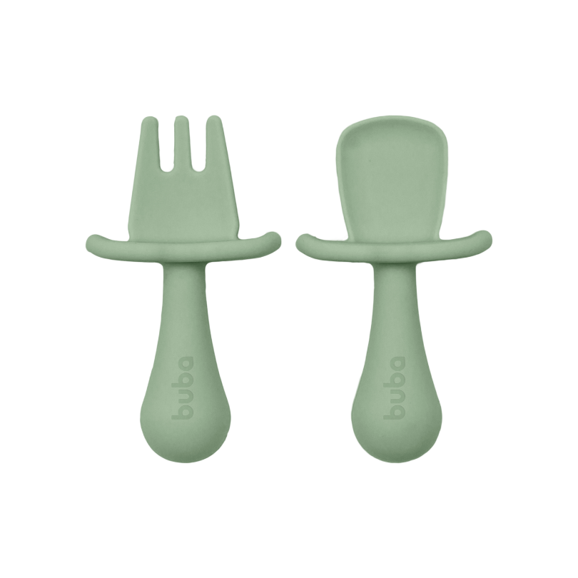 Kit talheres em silicone infantil com escudo verde buba