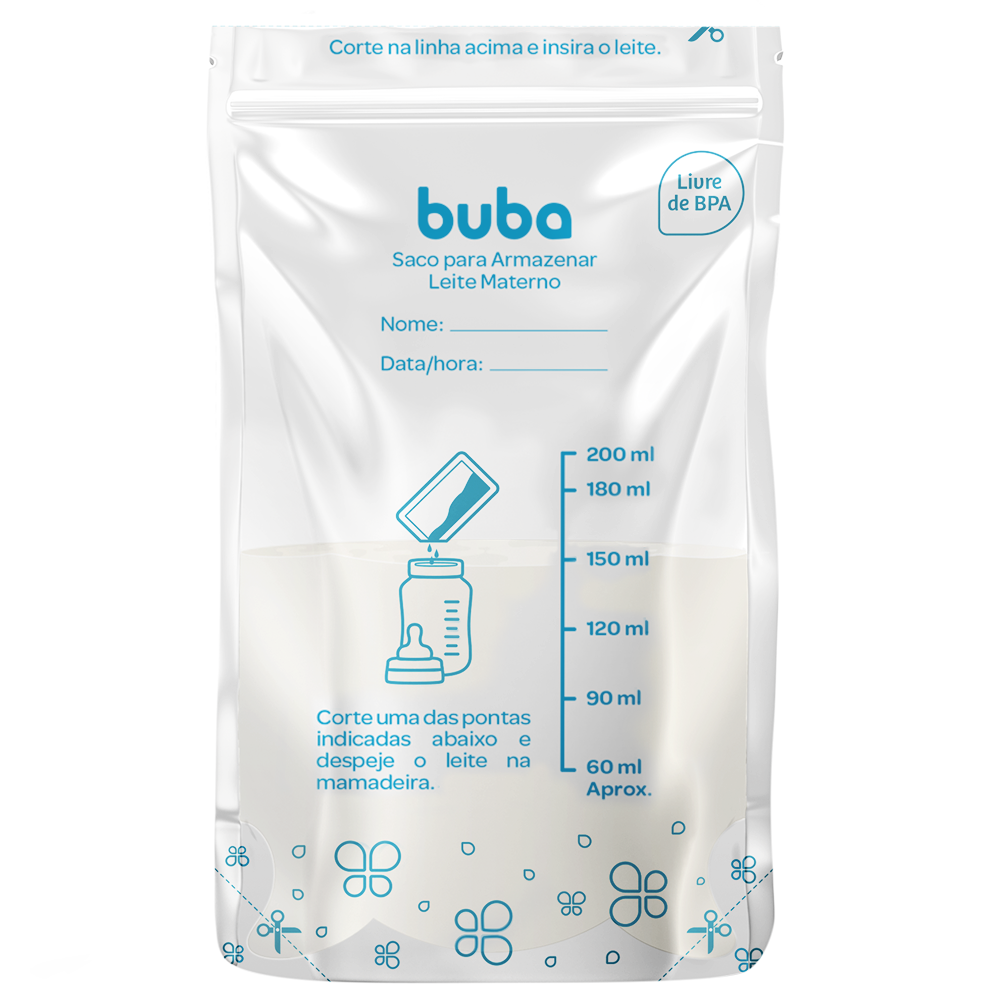 O Saco para Armazenar Leite Materno da Buba é ideal para armazenar e transportar o leite de forma prática e higiênica. O plástico é resistente e possui um zíper duplo para evitar vazamentos, adequado para ser conversado no congelador. Deve ser descongelado em banho-maria fora do fogo e não deve ser utilizado no micro-ondas.